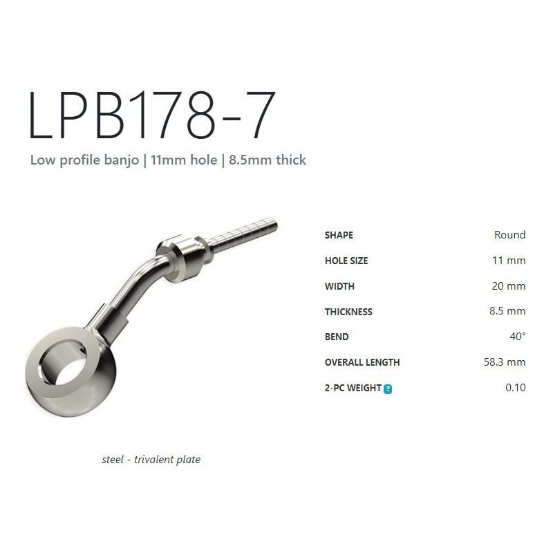Oko pro použití s nerez. oplet. hadicemi. Otvor 10 mm. Šířka 17 mm. Výška 8 mm. Ohyb 20° Délka 48,7 mm.