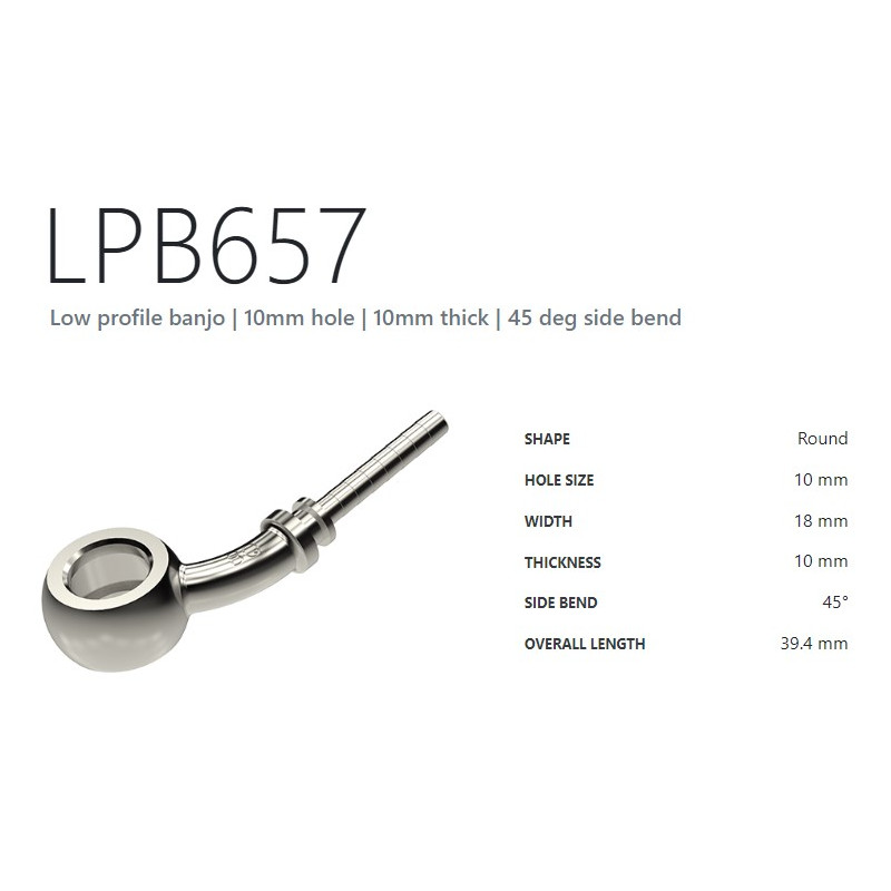 Oko pro použití s nerez. oplet. hadicemi. Otvor 10 mm. Šířka 17 mm. Výška 10 mm. Ohyb 45° Délka 48,2 mm.