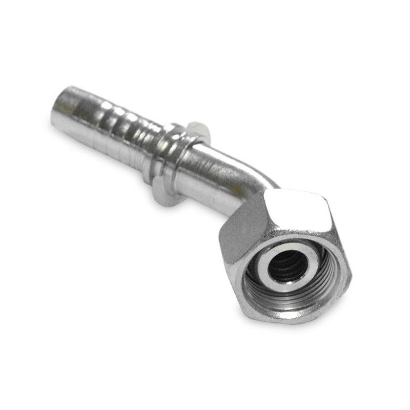 Hadicová koncovka DKOR 45° s převlečnou maticí se závitem BSP a těsnícím kuželem 60° a s "O" kroužkem v těsnícím kuželu - BS5200. Typ M20842 má matici zajištěnou drátem.
