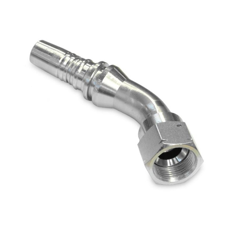 ORFS 45° interlock je hadicová koncovka s úhlem 45° s převlečnou maticí s G závitem a rovnou dosedací plochou. SAE J516, SAE J1453.Vhodná pro hadice: 4SP, 4SH, R12, R13, R15. Katalogové číslo: M42441