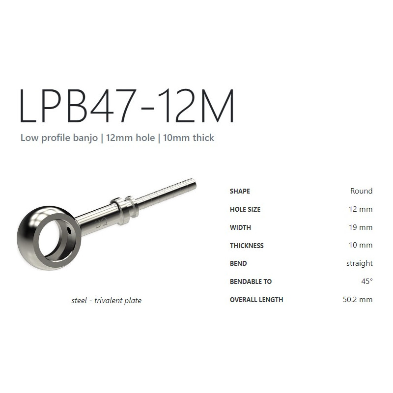 Oko pro použití s nerez. oplet. hadicemi. Otvor 10 mm. Šířka 17 mm. Výška 8 mm. Ohyb 20° Délka 48,7 mm.
