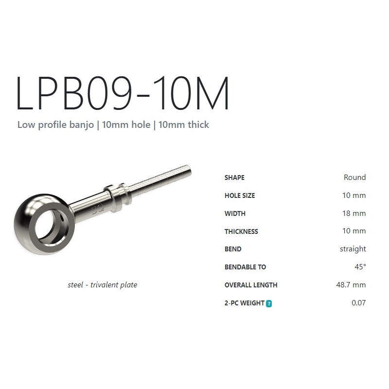 Oko pro použití s nerez. oplet. hadicemi. Otvor 10 mm. Šířka 17 mm. Výška 10 mm. Ohyb 45° Délka 48,2 mm.