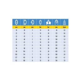 Flexibilní hadice z PVC odolná proti oděru, hladká uvnitř i na povrchu. Z měkkého PVC se zapuštěnou spirálou z pozinkované oceli pro sání a výtlak průmyslových kapalin, dobře odolává kapalinám v tlakosacích aplikacích a má excelentní rezistenci vůči chemii, ozónu a vlivům ve venkovním prostředí. Uvedené parametry v tabulce platí při teplotě +20 °C...