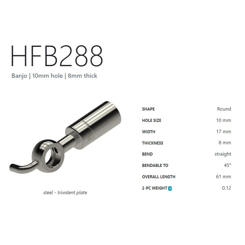 Oko - otvor 10 mm. Ohybatelné do 45°. Šířka 17 mm. Výška 08 mm. Délka 66 mm.