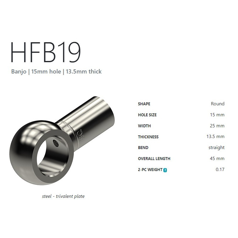Oko kostka - otvor 10 mm. Ohyb 20°. Šířka 19 mm. Stěna 10,4 mm. Délka 54 mm.