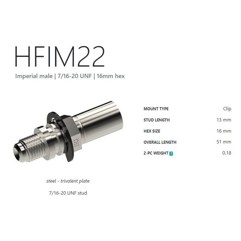 Koncovka rovná - vnější závit 7/16-24 UNS Jednokus s objímkou. Klíč 16 mm. Délka šroubení 12mm. Délka 40 mm.