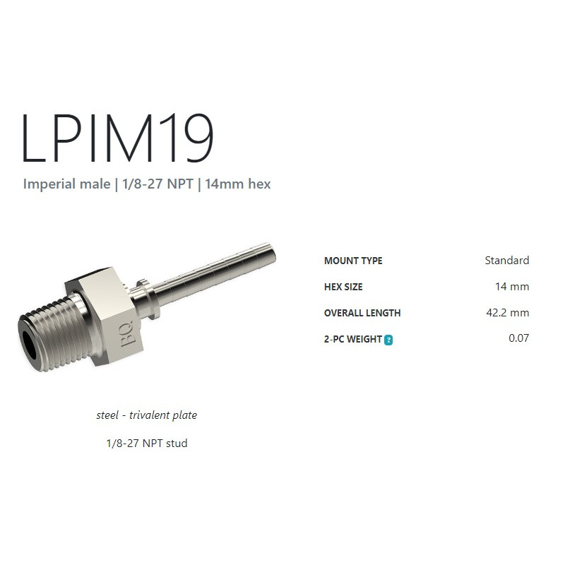 Standardní koncovka s vnějším závitem 1/8"-27 NPT.