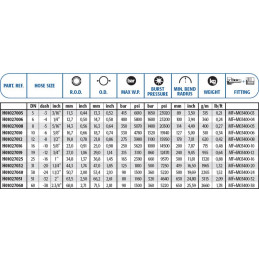 Série hadic se 4 oplety pro velký počet hydraulických impulzů a s perfektní ohebností. Vynikající životnost s odolností testovanou na 1 000 000 impulzních cyklů při 50% poloměru ohybu podle norem EN 586 a SAE 100. Extrémně malý poloměr ohybu na 40% požadavku normy EN 856 4SP/4SH. Splňují požadavky norem ISO 3862, EN 856 a SAE 100. Pracovní teplota...