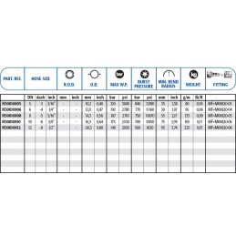 Isobarické hadice se 6 oplety pro velký počet hydraulických impulzů a s perfektní ohebností. Do 350 bar. Vynikající životnost s odolností testovanou na 1 000 000 impulzních cyklů při 50% poloměru ohybu podle norem EN 586 a SAE 100 Extrémně malý poloměr ohybu na 40% požadavku normy EN 856 4SP/4SH Splňují požadavky norem ISO 3862, EN 856 a SAE 100 Pracovní...